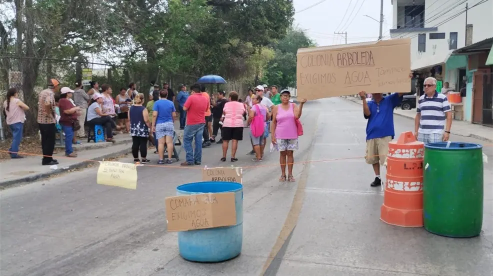 TAMPICO Tamaulipas.- Hartos de la desigualdad ante el abastecimiento de agua que se tiene en las colonias de Tampico, un nutrido grupo de vecinos bloquearon las calles principales de la colonia Arboleda para exigir a Comapa Sur una solución urgente.