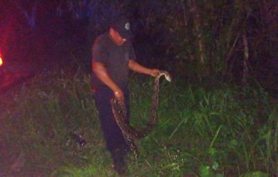 La rápida intervención de los agentes permitió capturar a la boa y trasladarla a su hábitat natural, lejos del pueblo. Esta es la segunda boa que es atrapada en la semana luego de intentar alimentarse en un gallinero.