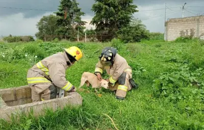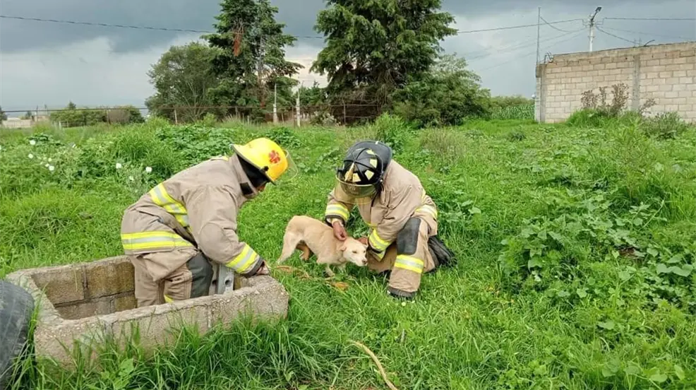 Bomberos de Metepec salvan a perrito atrapado en pozo