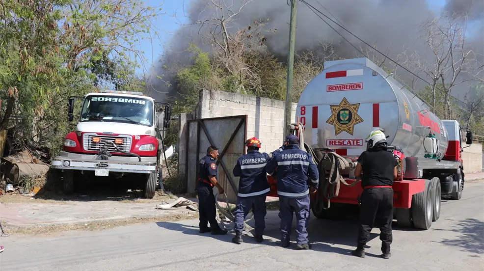 Bomberos logran sofocar incendio en una chatarrería de Kanasín