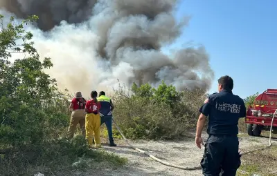 ALTAMIRA, Tamaulipas. - La página de Facebook de Bomberos Voluntarios de Tamaulipas AC, ubicada en Fracc Arboledas, Altamira, emitió una advertencia tras una quema irresponsable de basura entre las calles Geranio y Emilio Manatau, la cual desató un incendio que afectó extensas áreas de pastizales y tule en la zona.