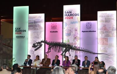 SALTILLO, Coahuila.- La tarde de este jueves 7 de marzo, la gobernadora de Aguascalientes, Tere Jiménez, y su homólogo en Coahuila, Manolo Jiménez, presentaron el programa de la Feria Nacional de San Marcos 2024. Cabe mencionar que en esta edición Coahuila será el estado invitado y se llevará a cabo del 13 de abril al 5 de mayo.