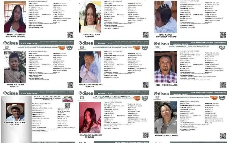 TEXCALTITLÁN, Estado de México.- La Fiscalía General de Justicia del Estado de México (FGJEM) ha emitido nueve fichas de búsqueda por una familia desaparecida en el municipio de Texcatitlán, que según los informes, los ciudadanos no han sido vistos desde el 8 de diciembre, fecha en la que se registró el enfrentaiento entre habitantes de Texcapilla y un grupo de la Familia Michoacna.