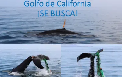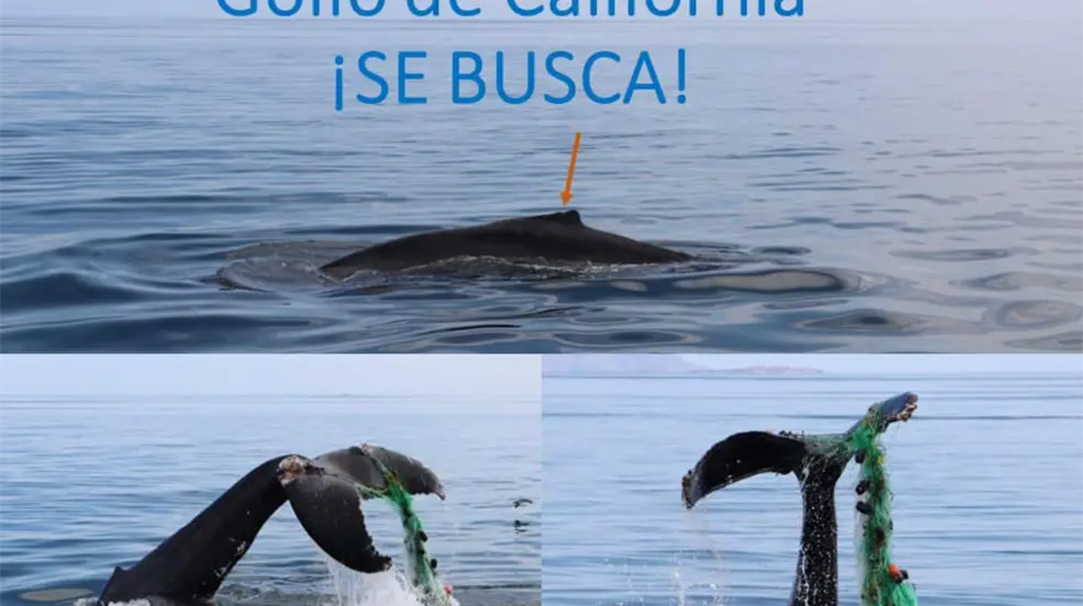 Buscan a ballena jorobada enmallada en el Golfo de California