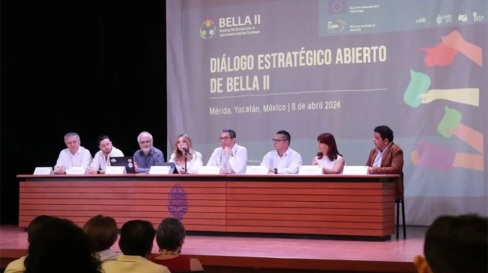 Por otro lado, el director general de la CUDI, Moisés Torres, indicó que este diálogo que se realiza en la UADY tiene como objetivo concebir la visión estratégica del rol de las universidades y de las RNIE ante los desafíos de la economía digital y producir una hoja de ruta que les permita, en el marco del proyecto BELLA II y de la Alianza Digital EU-LAC, contribuir significativamente al desarrollo sostenible del ecosistema digital RedCLARA.