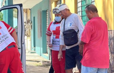 De inmediato, arribó personal de la benemérita para detener la hemorragia y canalizar al afectado a un hospital de urgencia, para continuar con su valoración tras el impacto de la patada y la caída.