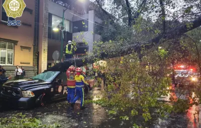 CUAUHTÉMOC, Ciudad de México. - La tarde de este martes 3 de septiembre, un árbol de más de 15 metros de alto, cayó frente a la sede de la Secretaría de Seguridad Ciudadana (SSC) de la Ciudad de México.