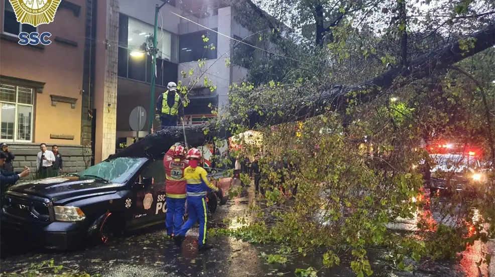 Cae árbol sobre patrulla de la SSC frente a sede policial en la Zona Rosa