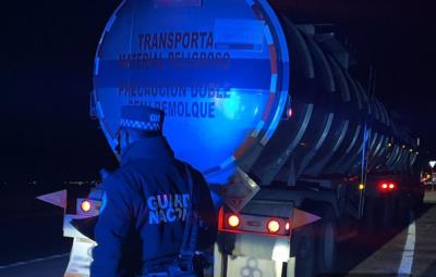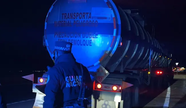 SALTILLO, Coahuila.- Integrantes de la Guardia Nacional (GN) llevaron a cabo la detención de un conductor de un tractocamión que transportaba 64 mil litros de combustible sin la documentación requerida que acreditara su origen legal, como parte de los operativos para combatir el robo de hidrocarburos.