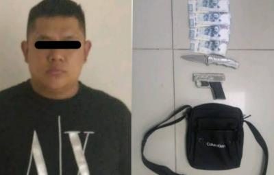 A Jorge Luis le aseguraron una réplica de arma de fuego, una navaja y dinero en efectivo, producto de la extorsión.