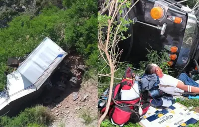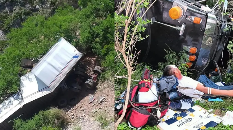 MONCLOVA, Coahuila.- Un tractocamión terminó en un barranco de 30 metros de profundidad luego de un accidente en la carretera 57 Monclova-Saltillo, en el punto conocido como La Muralla; el conductor resultó lesionado y su estado de salud es estable.