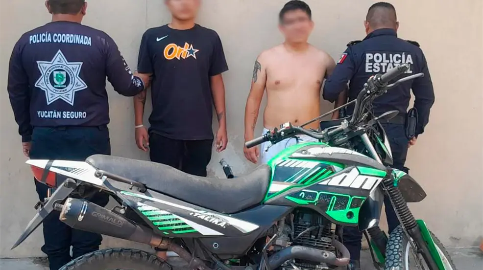 Los capturados respondieron al nombre de Kevin Jiménez A., de 28 años, y Oscar F. L. B., de 17 años, ambos originarios del puerto de Dzilam de Bravo, quienes se mostraron nerviosos y se contradijeron al ser interrogados. Tras una revisión, se confirmó que la moto en su poder era la robada.
