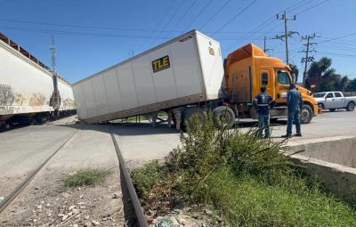 Al intentar pasar las vías del tren, el camión de carga fue impactado en Ramos Arizpe.