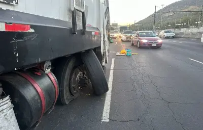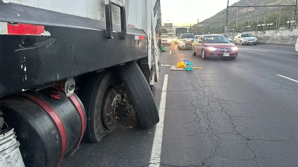 Es en este sitio donde circulaba sobre carriles centrales un camión recolector de basura de la alcaldía Venustiano Carranza mismo que presentó una falla luego de qué las llantas traseras del lado izquierdo se desprendieran de su eje.
