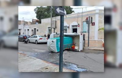 Dos camionetas tuvieron un aparatoso choque en el Centro de Mérida, justo en la esquina de un popular bar de la ciudad
