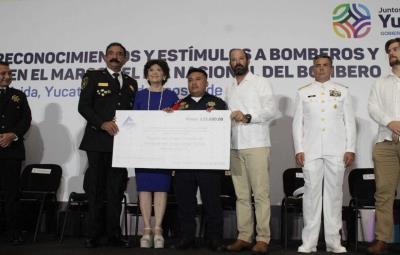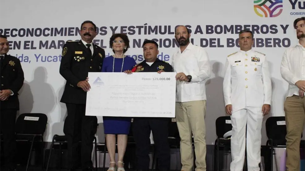 MÉRIDA, Yucatán.- En el marco del Día Nacional del Bombero, la Cámara Nacional de Comercio Servicios y Turismo (CANACO) reafirma su compromiso social al reconocer la destacada labor de los bomberos. En una ceremonia especial, se otorgó un reconocimiento y un estímulo económico al Policía Tercero, Carlos Adrián Tut Keb, en agradecimiento a su dedicación y valentía.