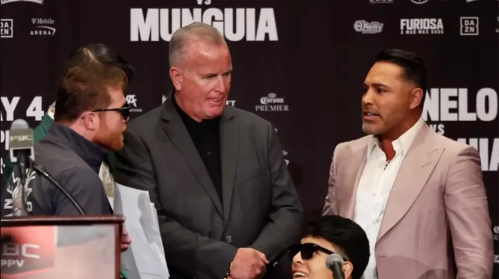 Ante estas afirmaciones, las emociones se intensificaron y estuvieron a punto de derivar en una pelea cuando Canelo se levantó de su asiento y se dirigió hacia De la Hoya. Sin embargo, los presentes en la conferencia de prensa intervinieron de inmediato, evitando que la situación pasara a mayores y quedando en una confrontación verbal.