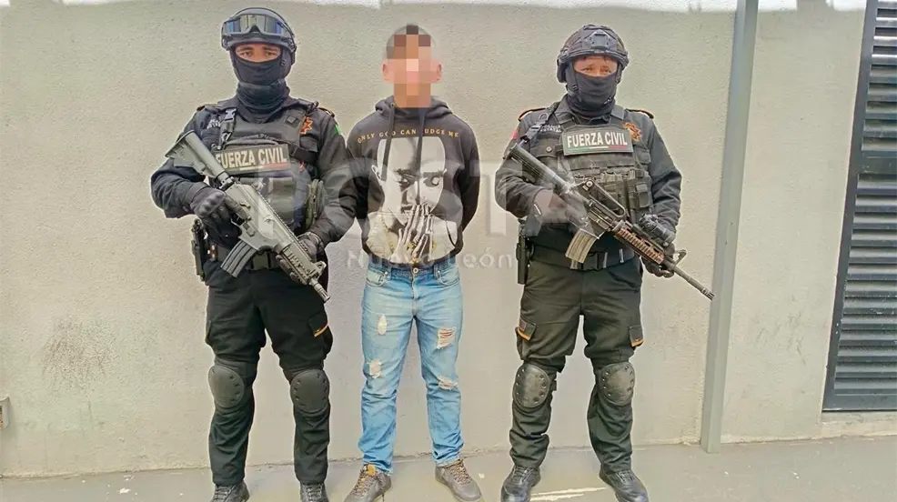 Policías de Fuerza Civil detienen a un presunto implicado en el caso de 13 cuerpos encontrados en un terreno en Pesquería, Nuevo León.
