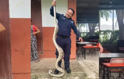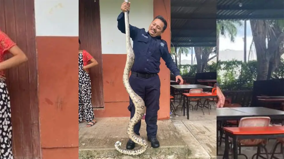 A través de redes sociales, el oficial encargado de atrapar al animal, posa sonriente con la serpiente. Esta no es la primera vez que se reporta la presencia de una boa en un lugar público, pues el pasado mes de abril se capturó al ser vista en el tinglado de una casa particular.