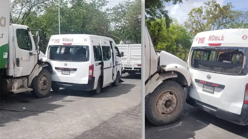 MÉRIDA, Yucatán.- Un accidente vial en la Ciudad Industrial dejó un saldo de siete personas lesionadas. El incidente ocurrió en la avenida Benito Juárez por la calle 19, cuando un camión de basura de la empresa Pamplona colisionó por alcance contra una camioneta de transporte público de la ruta Roble. El impacto fue tan fuerte que la camioneta de transporte chocó a su vez con una camioneta Nissan NP-300.