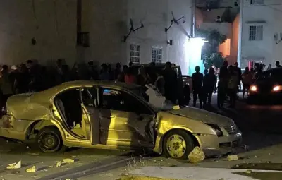 Para desahogar su enojo comenzaron a lanzar piedras al auto, mismo que fue destruido en su totalidad.
