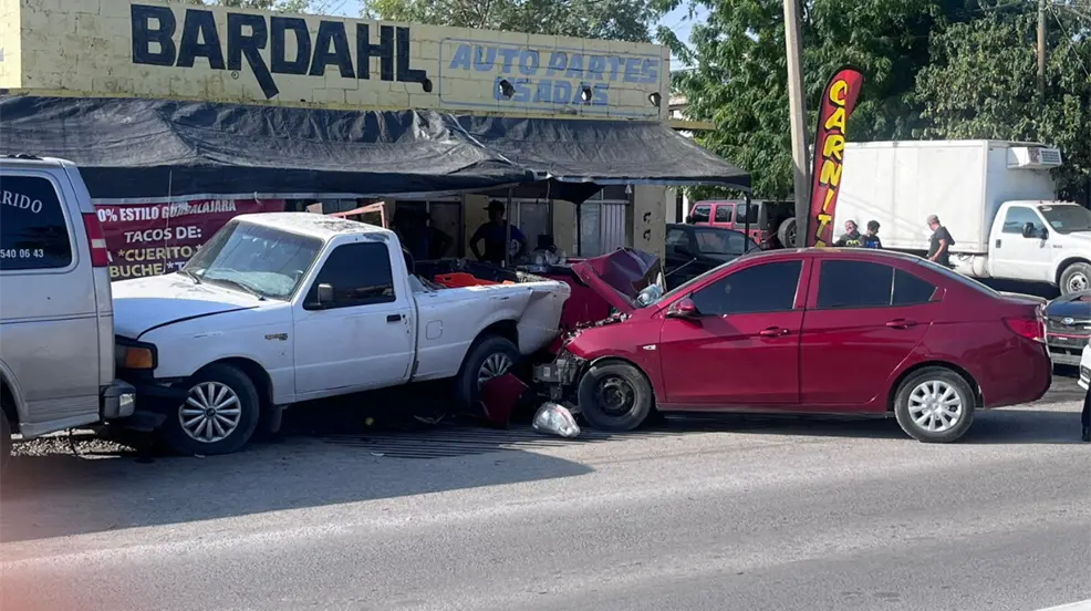 Al ser impactada, la camioneta Ranger salió proyectada y se estampó en la parte posterior de una camioneta marca GMC que también estaba estacionada.