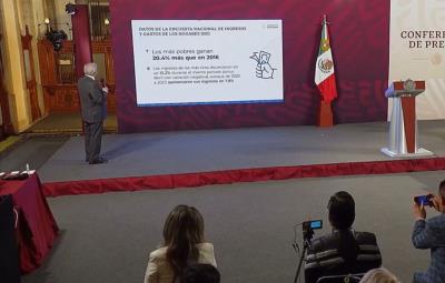 El presidente López Obrador externó su entusiasmo por el incremento superior al 20% de ingresos entre los sectores de la población con mayores niveles de pobreza