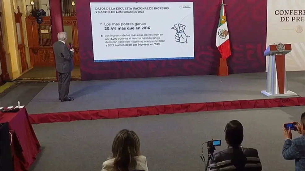 Los ingresos de los más ricos decrecieron en un 13.2% durante el mismo periodo, es el único decil con variación negativa; aunque de 2020 a 2022 ya aumentaron sus ingresos en 7.8%