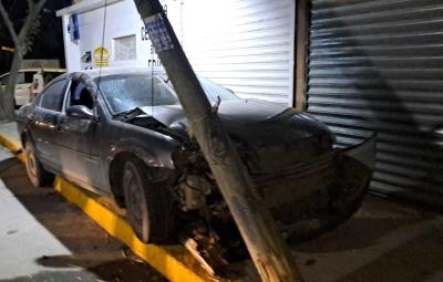 Presuntamente tras el impacto el conductor del stratus perdió el control y se estrelló contra un poste de madera el cual arrancó por completo.