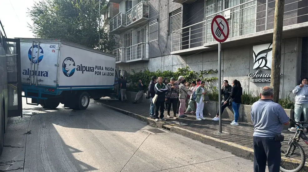 Este tramo de los carriles laterales del Circuito Interior es particularmente estrecho, y debido a las dimensiones de los vehículos involucrados, el autobús de RTP no logró maniobrar a tiempo, impactando al camión de carga por la parte trasera. Como resultado del choque, el camión de Alpura terminó estrellándose contra la fachada de un edificio habitacional cercano, causando daños en parte del muro de concreto.