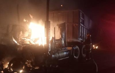 Chocan dos tráileres y se incendian en Zacatecas