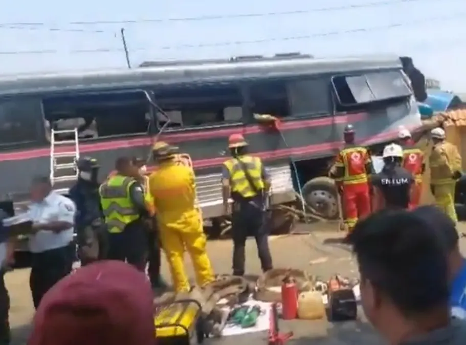 Un autobús de pasajeros sufrió un aparatoso accidente sobre la carretera Tangancícuaro-Patámban, Michoacán.
