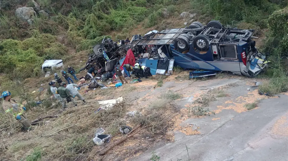 El choque entre el tráiler y el autobús de pasajeros de la empresa Ómnibus, seguido de una caída a un barranco en la autopista 'Osiris' Zacatecas-Aguascalientes, dejó 24 muertos y 5 heridos, según autoridades de Zacatecas.