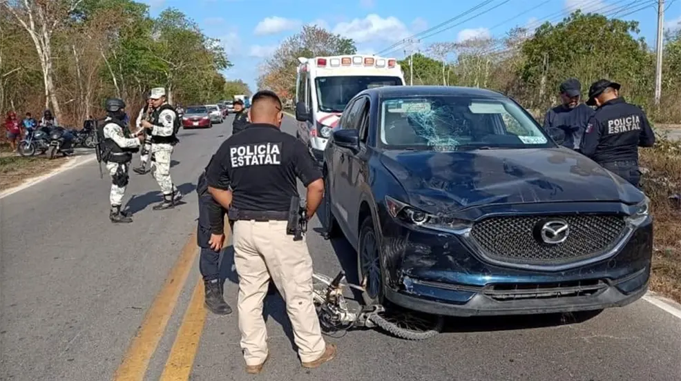 MÉRIDA, Yucatán.- Esta mañana, un ciclista de 43 años resultó gravemente herido tras ser atropellado por una camioneta en el kilómetro 165 de la carretera Mérida-Cancún, tramo Valladolid-Tikuch. El accidente ocurrió cuando el ciclista se dirigía a su lugar de trabajo y fue impactado por una camioneta Mazda.