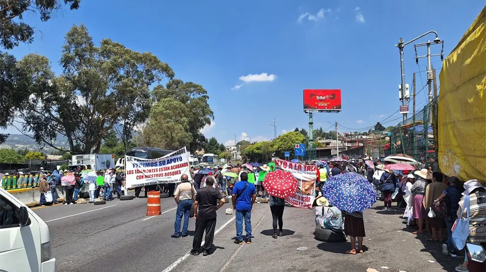 Habitantes de topilejo cierran autopista amexico Cuernavaca. Exigen dialogar con autoridades para tratar problemas de tala en la región