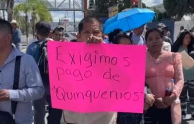 La protesta es para exigir el pago del concepto de quinquenios, un beneficio salarial que ha quedado en deuda desde las últimas tres administraciones estatales. En esta ocasión reclamaron que el actual gobierno estatal tampoco ha hecho algo por resolver el problema.