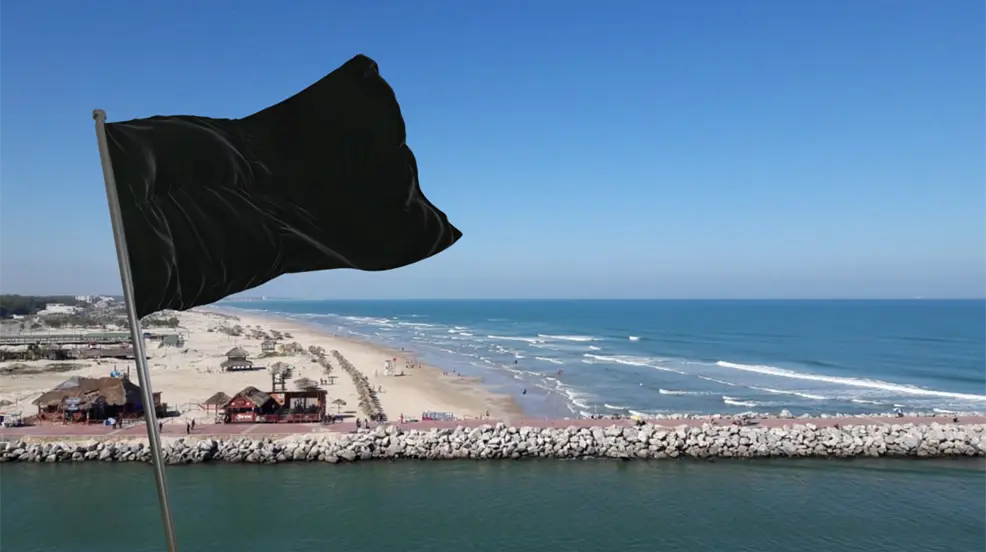 En México, la presencia de una bandera negra informa que existen graves riesgos en el lugar para la salud de las personas, ya sea por mal estado en el mar o en la arena.