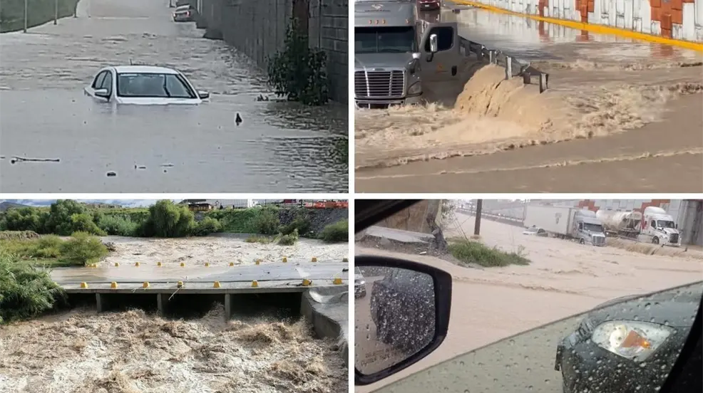 Rescatan a 3 personas atrapadas por inundación en Saltillo; cierran vialidades