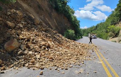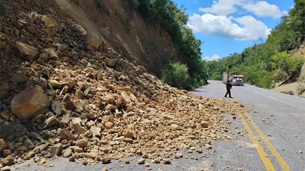 HIDALGO, Tamaulipas.- Un derrumbe por deslave ha provocado el cierre parcial de la circulación en la Carretera Federal 85 Victoria-Monterrey, específicamente en el kilómetro 93, en el ejido Mariano Escobedo, municipio de Hidalgo.