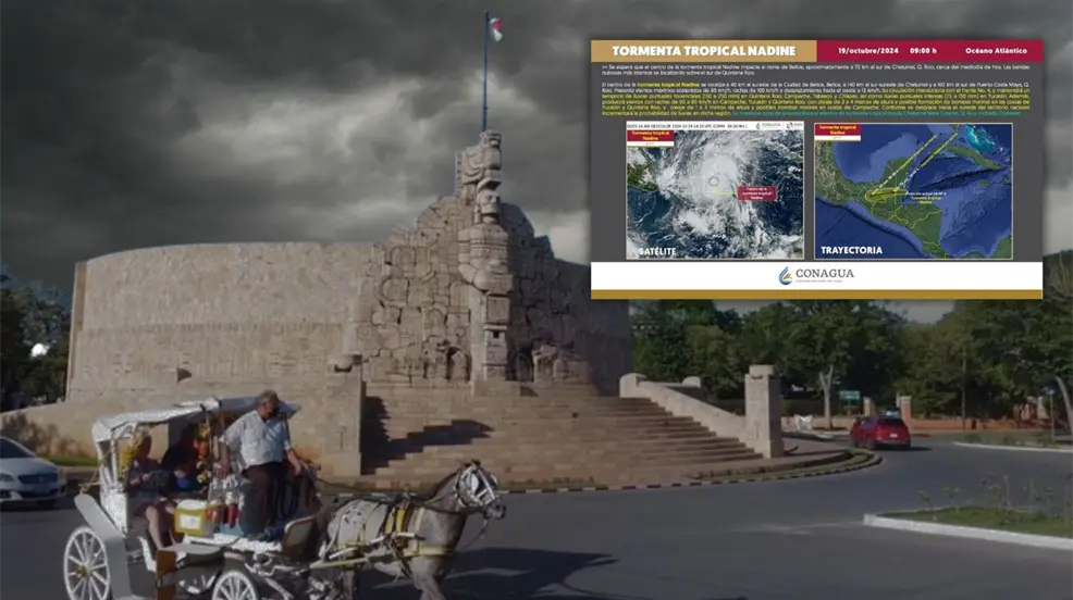 MÉRIDA, Yucatán.- La Tormenta Tropical Nadine se formó en el occidente del Mar Caribe y avanza hacia el oeste con vientos sostenidos de 85 km/h y rachas que alcanzan los 105 km/h. Actualmente, su centro se ubica a 355 km al sureste de Tekax, Yucatán, y se desplaza a 13 km/h. Se espera que Nadine continúe su trayectoria hacia Belice, donde podría tocar tierra en las próximas horas, afectando la región centro y norte del país, así como el norte de Guatemala.