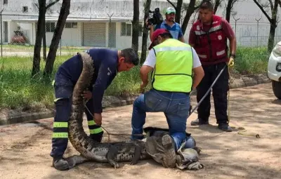 De inmediato se realizó el reporte al personal de bomberos Altamira, quiénes acudieron para realizar las labores de captura correspondiente y así asegurar al enorme reptil.