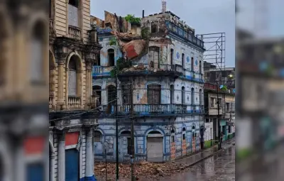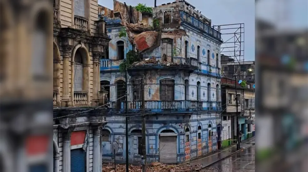 Colapsa fachada de edificio histórico en la zona centro de Tampico
