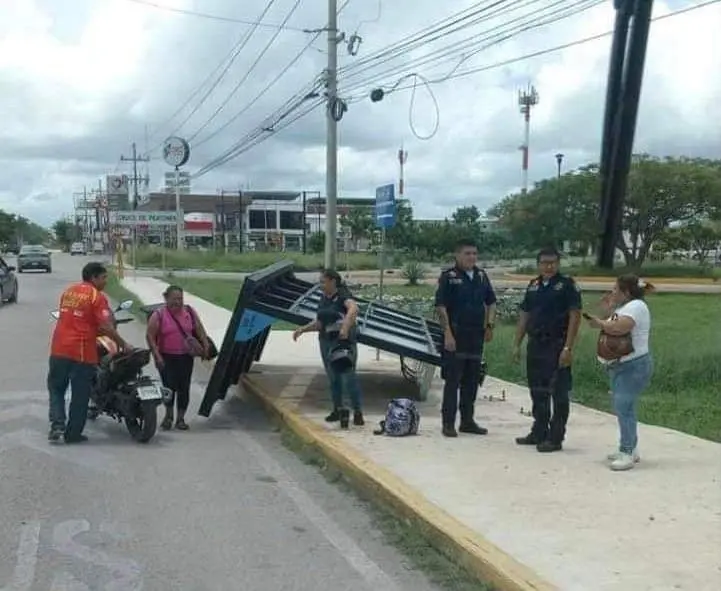 MÉRIDA, Yucatán.- Este sábado en la tarde, un paradero del sistema de transporte público "Va y Ven" ubicado en el kilómetro 45 del Periférico Poniente de Mérida, Yucatán, colapsó, dejando a un usuario lesionado. El incidente ocurrió en la entrada del Complejo de Seguridad Pública del Estado de Yucatán, cuando la estructura metálica se desplomó, sorprendiendo a quienes esperaban el autobús.