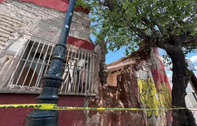 Parte de una barda de una casa abandonada en el Centro Histórico colapsó luego de una semana de intensas lluvias en la capital duranguense.