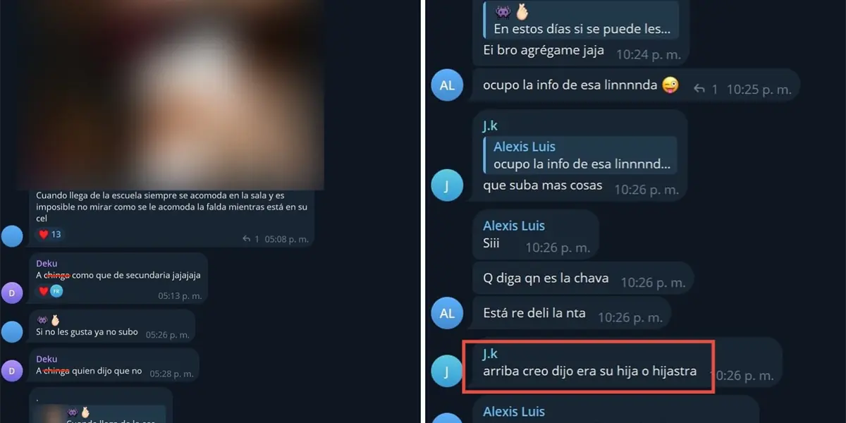 La organización señaló que lo más agravante es que dentro de este grupo de Telegram están los propios padres y padrastros de las víctimas, unos 350 hombres, quienes comparten fotografías de las adolescentes estudiantes de las secundarias Técnicas 1 y 6, la Federal 2 y otras instituciones.