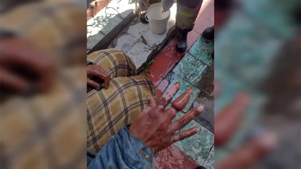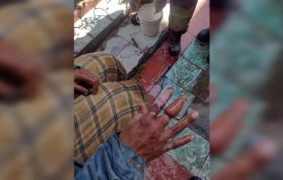 El peculiar auxilio ocurrió en la vía pública, en el cruce de Zarco y Felipe Pescador, donde Juan "N" de 45 años, quien vive en condición de indigencia, pidió ayuda al ver cómo su dedo se hinchaba por el bloqueo de circulación.