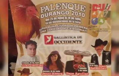 DURANGO, Durango.- En el grupo de Facebook, Durango Antiguo, la usuario Angela Diva, compartió una imagen promocional del palenque de la FENADU perteneciente al año 2010, en el que se aprecia un artista que repetirá participación en esta edición 2024.