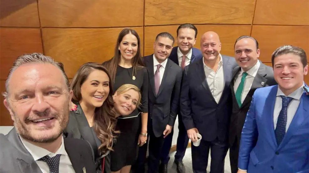 Su corbata, en tono guinda, contrasta con el estilo que usaron otros gobernadores opositores que aparecen en las imángenes, como Samuel García, de Nuevo León (tonos azules), Manolo Jiménez, de Coahuila, con corbata verde; y Enrique Alfaro, que no llevaba corbata.