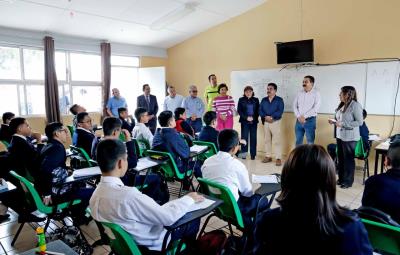 El Secretario Hernández Espejel visitó diversas escuelas, como la Escuela Telesecundaria José Vasconcelos, donde constató que las clases se desarrollan con normalidad.