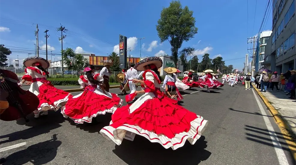 Los grupos de danza, provenientes de diferentes partes del país, iniciaron su recorrido desde el Museo Galería de Arte Mexiquense Torres Bicentenario en Toluca, acompañados por la banda musical Santa Cecilia.